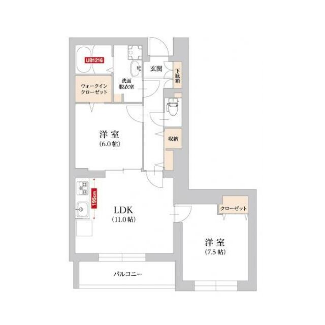 2LDK(LDK11帖・洋室7.5帖・洋室6.0帖・洗面脱衣室) |