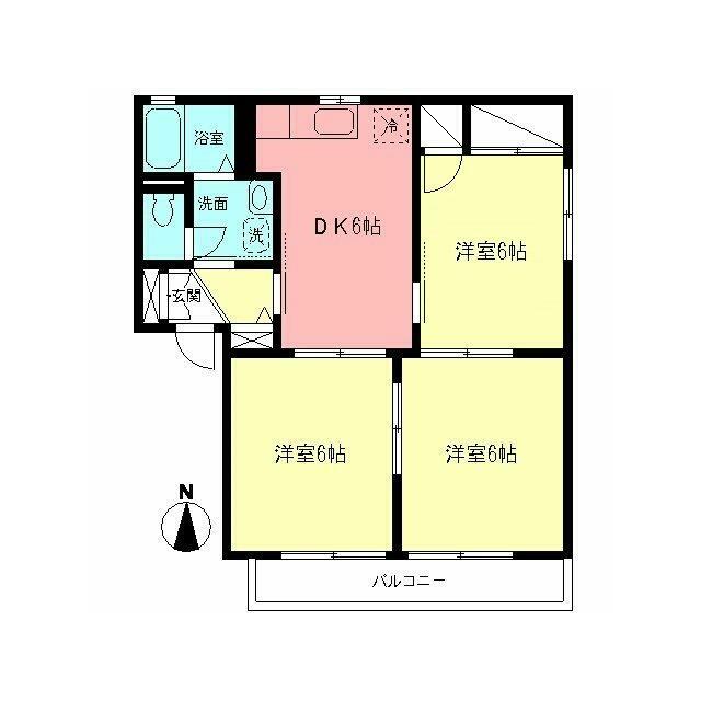 3DK(洋室6畳/洋室6畳/洋室6畳/DK6畳) |