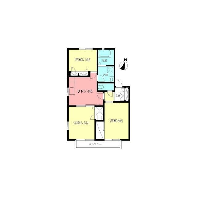 | 間取り | 3DK(洋室5.6畳/洋室4.5畳/洋室6畳/DK6.4畳) | 主要採光面 | 東 |