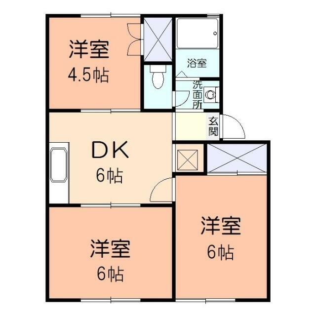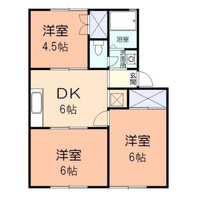 | 間取り | 3DK(洋室4.5畳/洋室6畳/洋室6畳/DK6畳) | 主要採光面 | 南 |